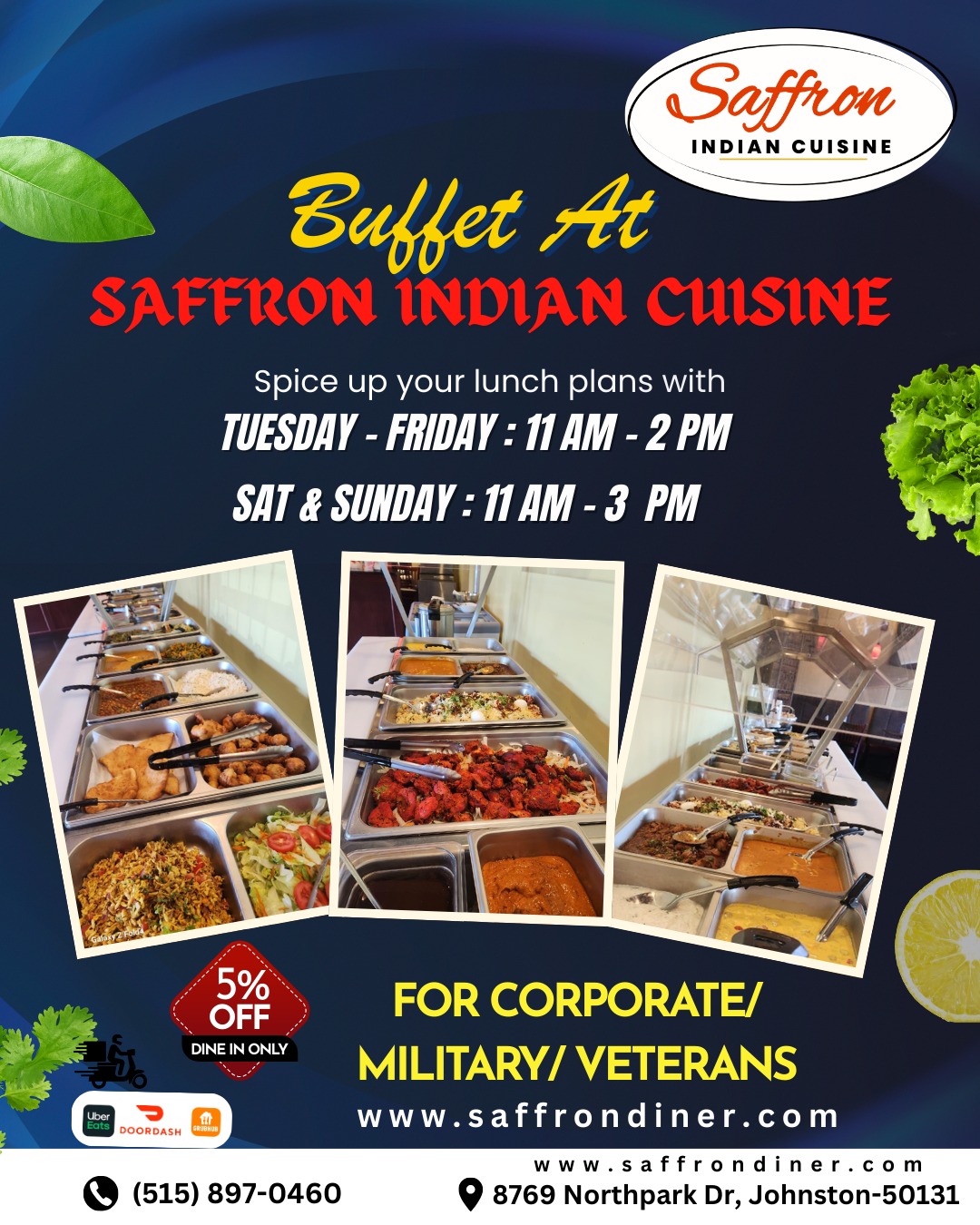Skip the drive and savor the spice! Saffron delivers bold, flavorful Indian dishes every Friday and Saturday—perfect for students, families, and food lovers.